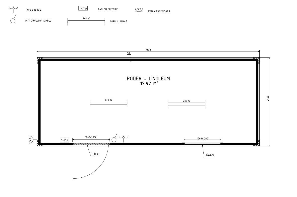 - Ușă Externa: 1 x ușă metalică robustă, cu dimensiunea de 1000/2000 mm, asigurând acces securizat.